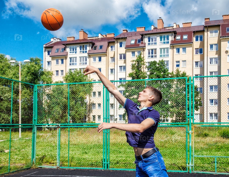 Молодой человек тренируется в баскетболе