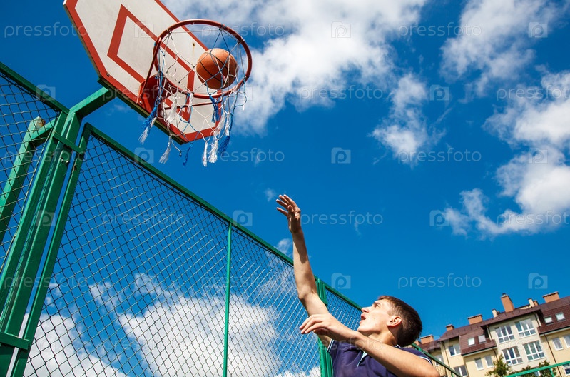 Молодой человек играет в баскетбол
