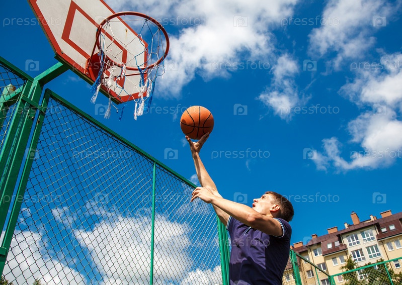 Молодой человек играет в баскетбол