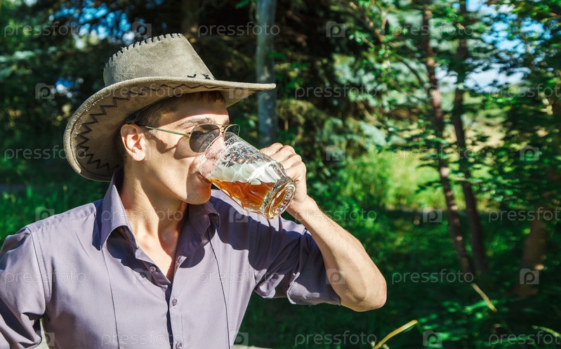 Молодой человек пьет пиво в парке