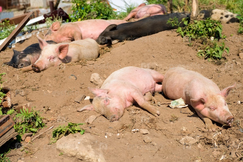 Поросята в летний день на ферме спят