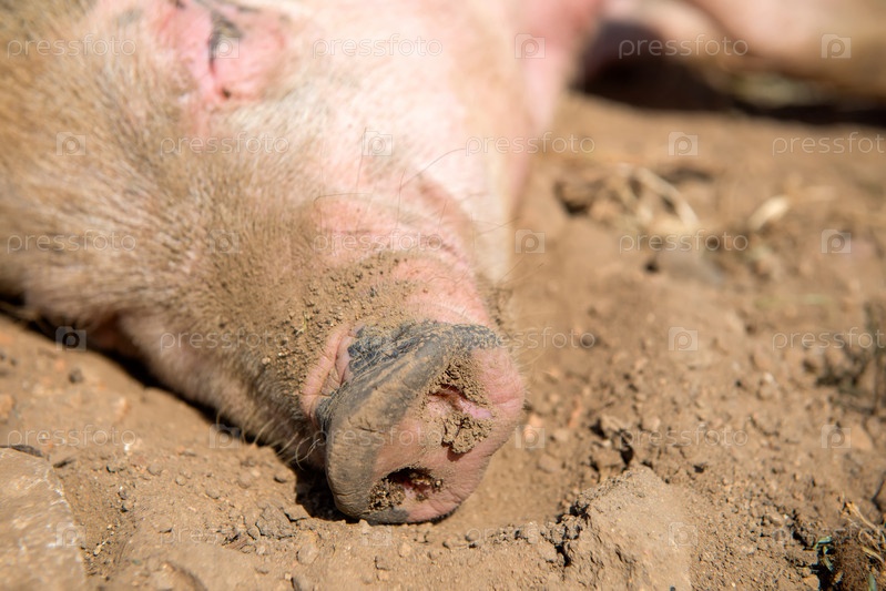 Поросята в летний день на ферме спят