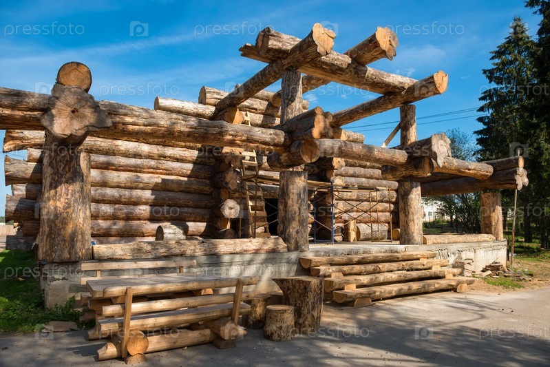 Строительство деревянного дома из огромных деревьев