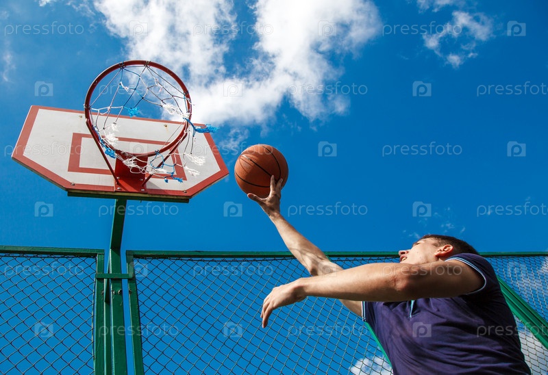 Молодой человек играет в баскетбол