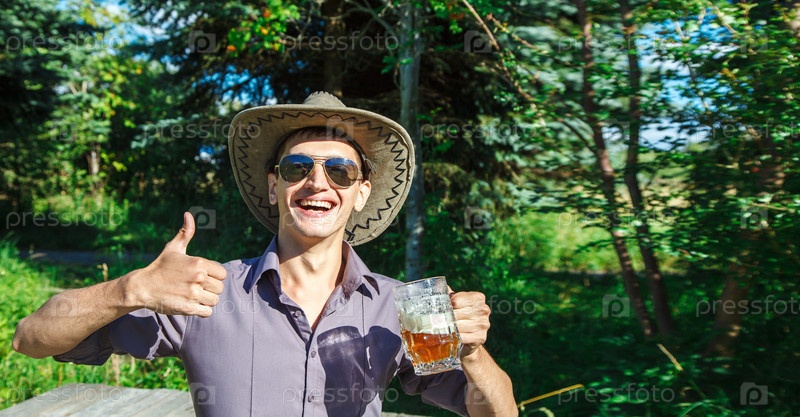 Молодой человек пьет пиво в парке
