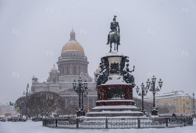 Вид на Исаакиевский собор и конную статую императора Николая 1
