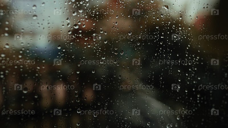 Конденсат на оконном стекле в морозную зимнюю погоду. Фон в виде мелких капель на стекле