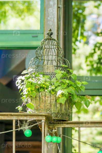 Декоративная клетка с цветами в кафе