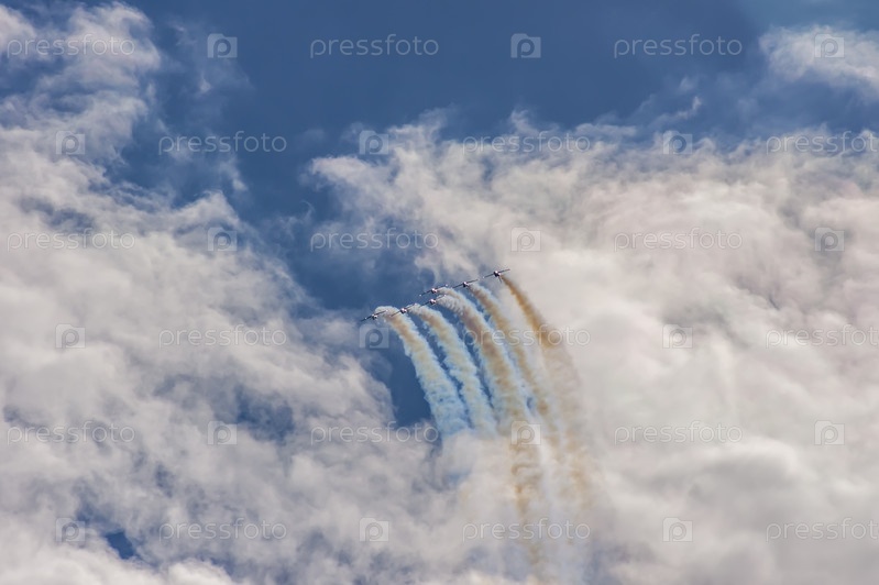 Самолеты в небе выполняют фигуры высшего пилотажа