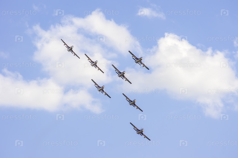 ЖУКОВСКИЙ, МОСКОВСКАЯ ОБЛАСТЬ, РОССИЯ - 23 июля 2017 г.: Экспозиции Международного аэрокосмического салона МАКС-2017 в Жуковском, Московская область, Россия Пилотная группа Al Fursan из Объединенных Арабских Эмиратов