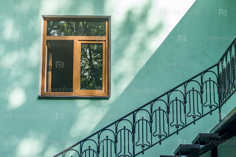 Фасад окна дома и металлическая лестница