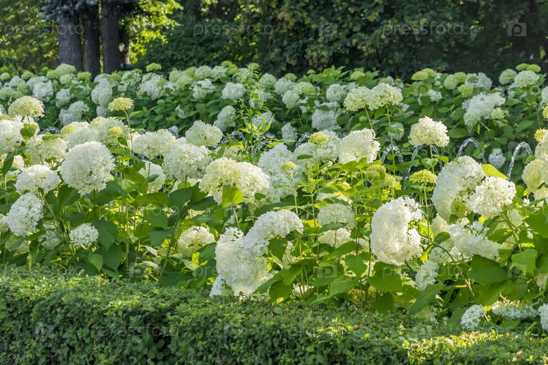 Цветущая белая гортензия