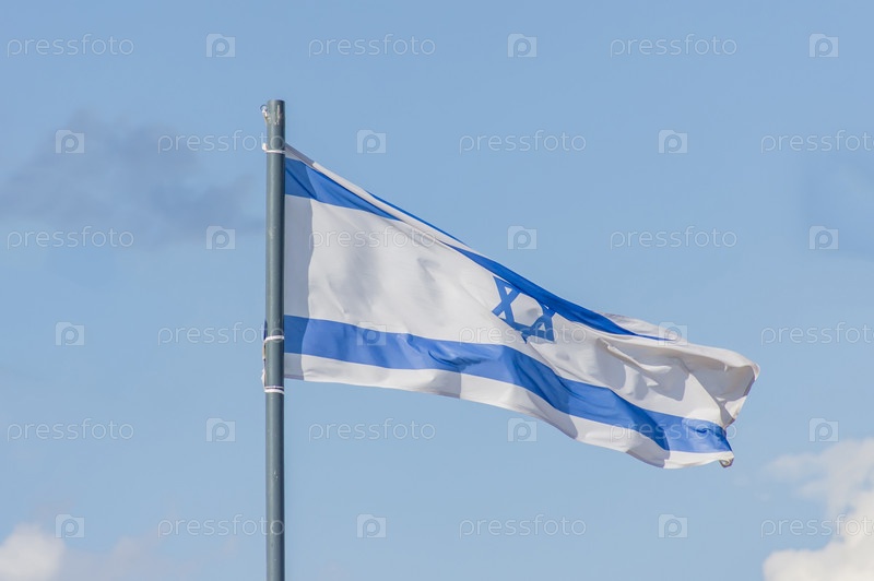 Государственный флаг Израиля развевается над голубым небом