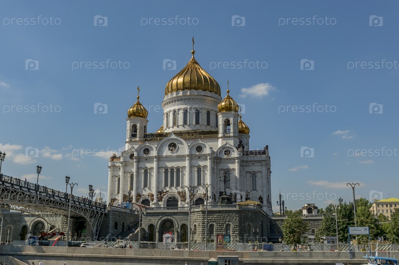 Москва, Россия - 10 августа 2017 г. Храм Христа Спасителя летом