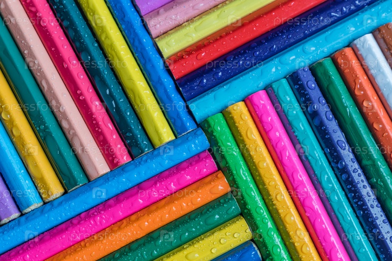 Цветные карандаши фон с каплей воды