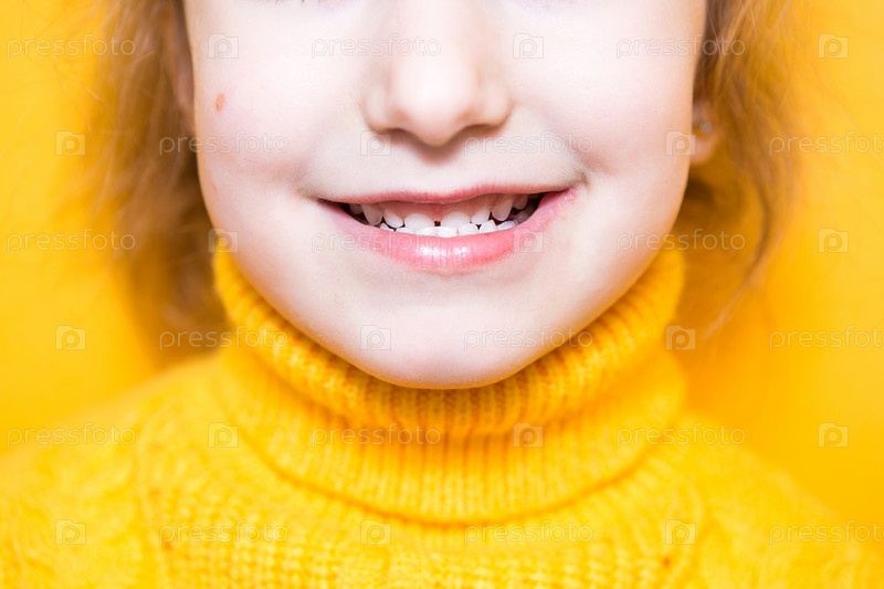Девушка показывает зубы - патологический прикус, неправильный прикус, неправильный прикус. Детская стоматология и пародонтология, исправление прикуса. Здоровье и уход за зубами, лечение кариеса, молочные зубы. Верхняя челюсть опирается на десну