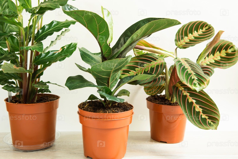 Группа популярных комнатных растений в горшках: калатея, маранта, марантовые, хавортия, фикус лирата, бенджамин, эхеверия. Выращивание комнатных растений в горшках, зеленый домашний декор, уход и выращивание