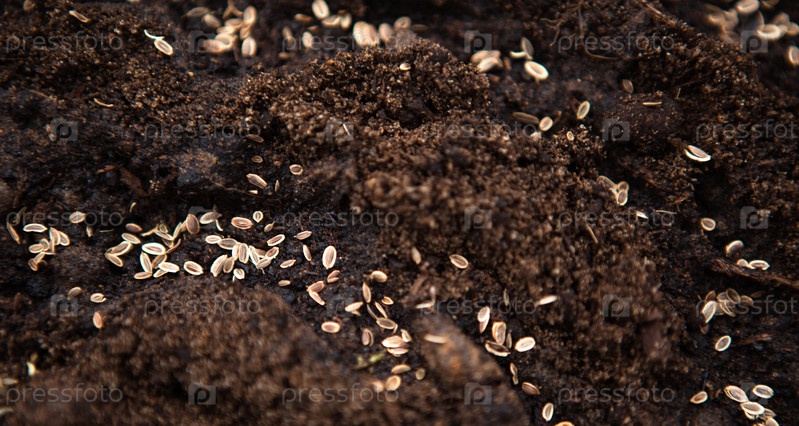 Высевают семена на грядку в грунт. Выращивание экологически чистых продуктов в саду. Посадка цветов весной на открытом воздухе