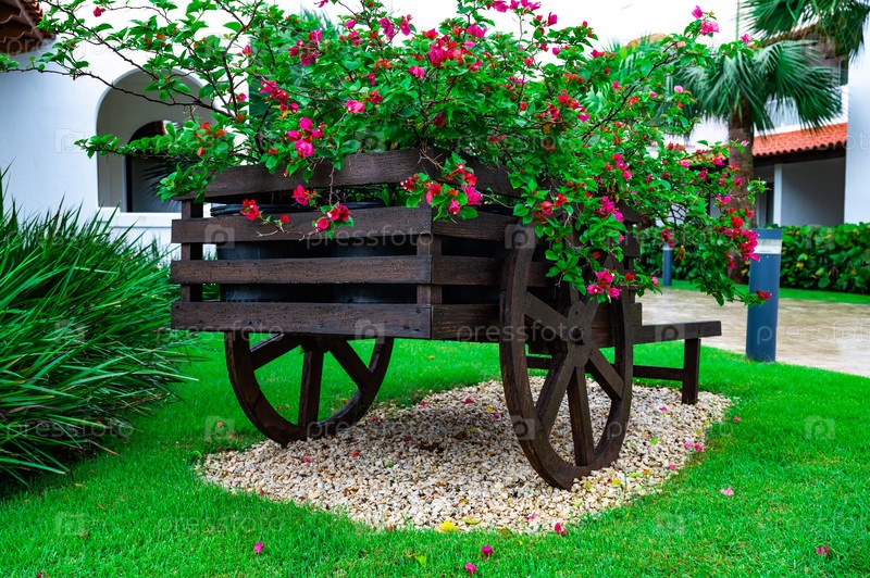 Декоративная деревянная тележка с цветами