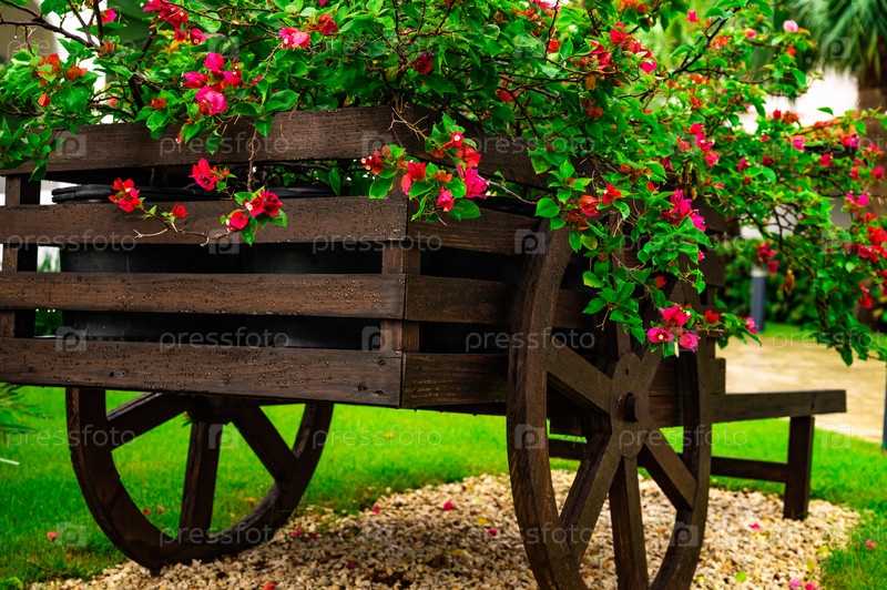 Декоративная деревянная тележка с цветами