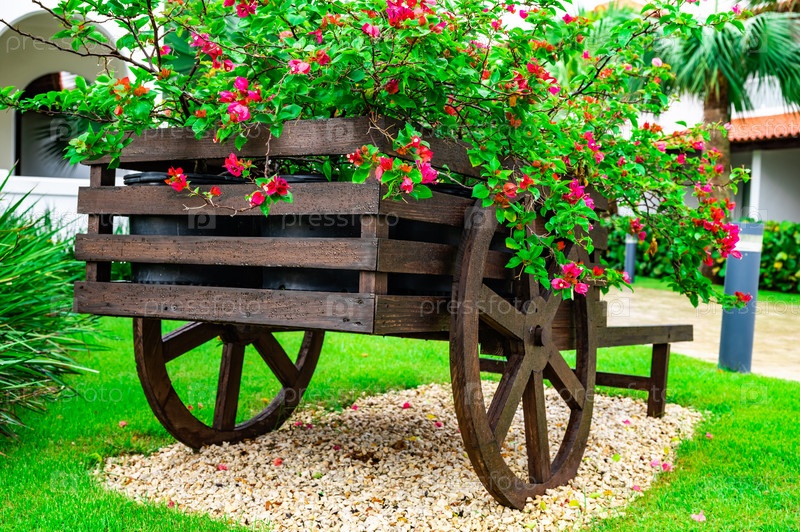 Декоративная деревянная тележка с цветами