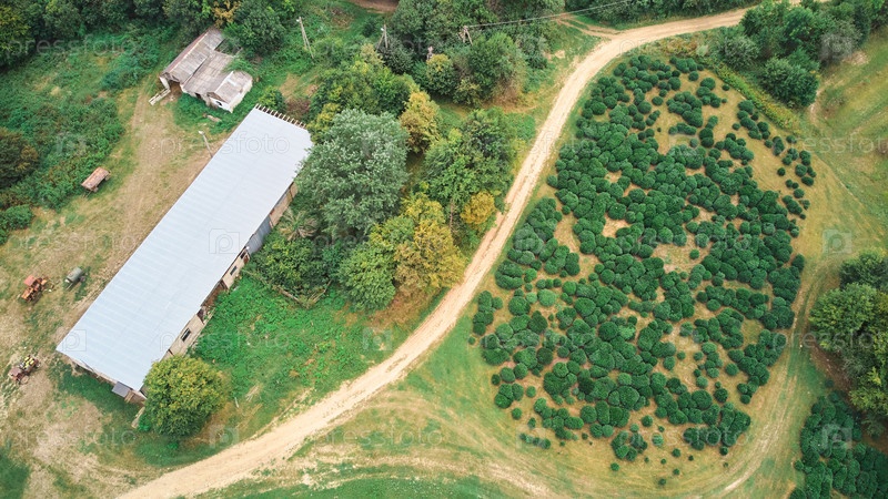 Посадка чайных кустов. Небольшая ферма. Сельскохозяйственная промышленность. с дрона