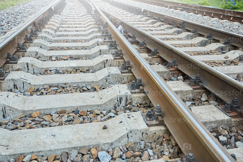 Уходящая вдаль железная дорога, заросшая травой. Заброшенные железнодорожные пути