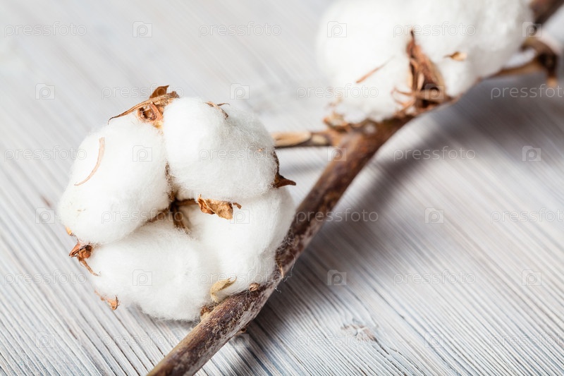 Натуральная сушеная ветка хлопчатника на серой доске