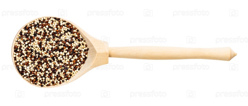 Вид сверху на деревянную ложку со смесью зерен киноа