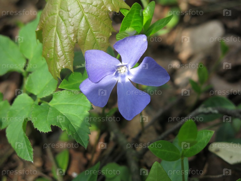 Весенний голубой стекающийся многолетний цветок барвинок (Apocynaceae Vinca)