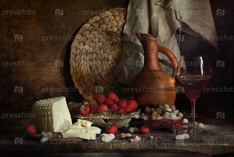 Натюрморт с вином и сыром на деревянном фоне