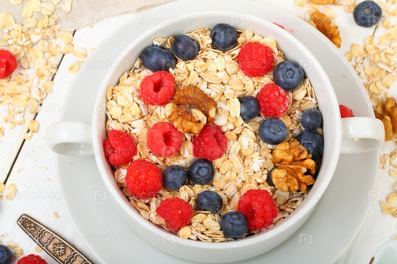 Овсяные хлопья с малиной,голубикой и молоком