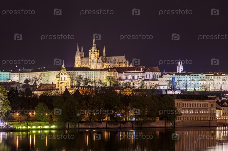 Карлов мост в Праге вечером с разноцветными огнями фонарей
