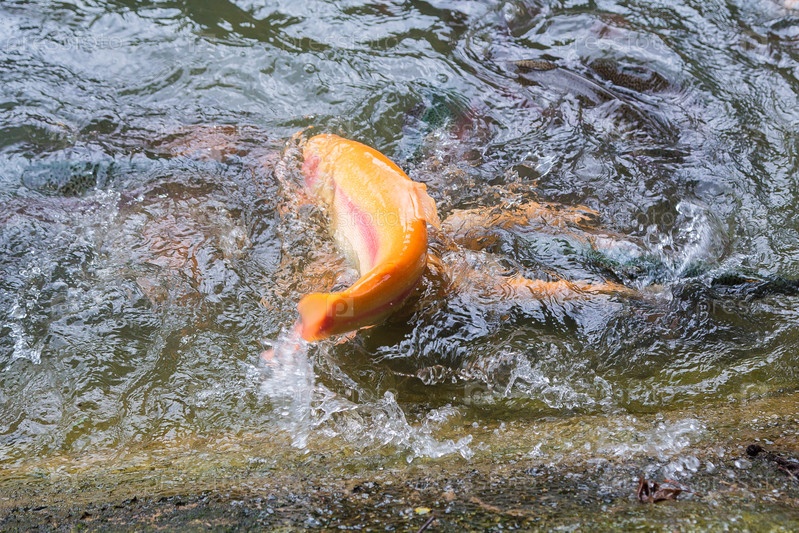 Золотая, радужная форель на рыбной ферме плещется в воде