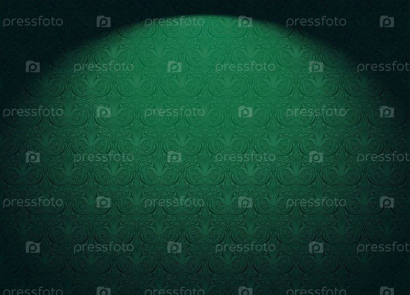 Королевский, винтажный, готический горизонтальный фон зеленого цвета с классическим античным орнаментом, рококо. Векторная иллюстрация