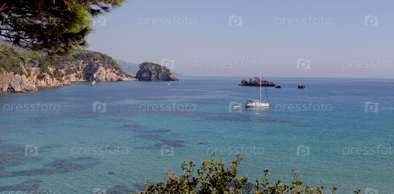Яхта пришвартована в открытом море (район Эпира, Греция)
