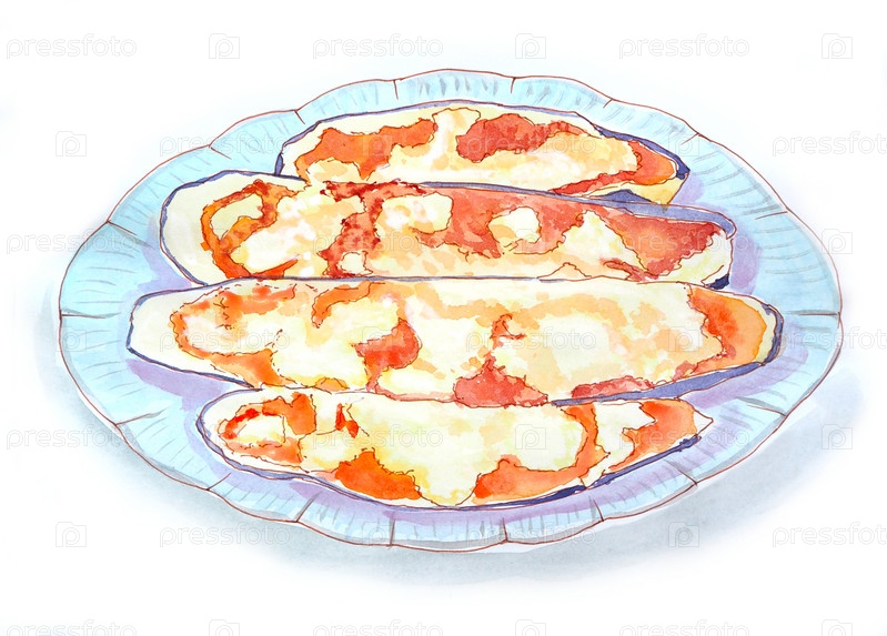 Акварель баклажаны с овощами и сыром