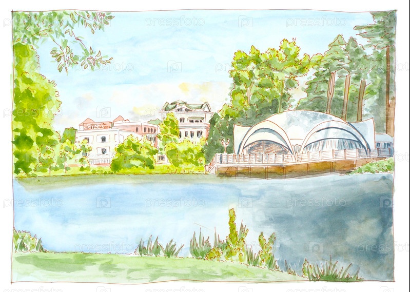 Акварель пейзаж подмосковье
