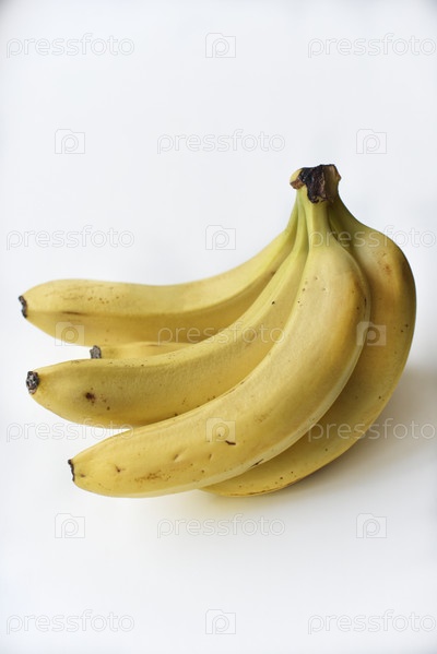 Спелый желтый банан на белом фоне. Куча свежих бананов. Сладкие бананы на завтрак