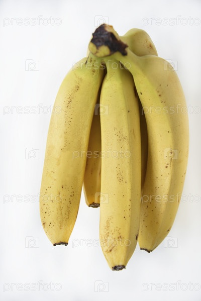 Спелый желтый банан на белом фоне. Куча свежих бананов. Сладкие бананы на завтрак