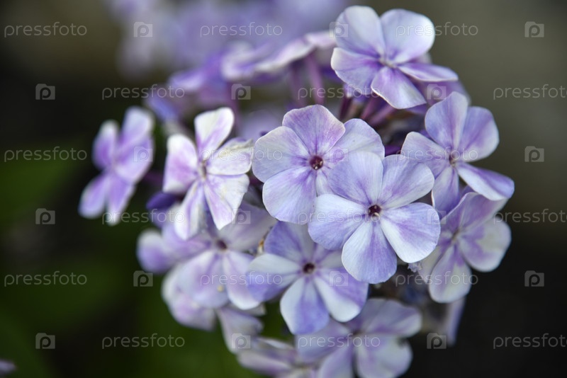 Синие и белые цветы флокса метельчатого с боке из летнего сада крупным планом. Маленькие голубые цветки флокса