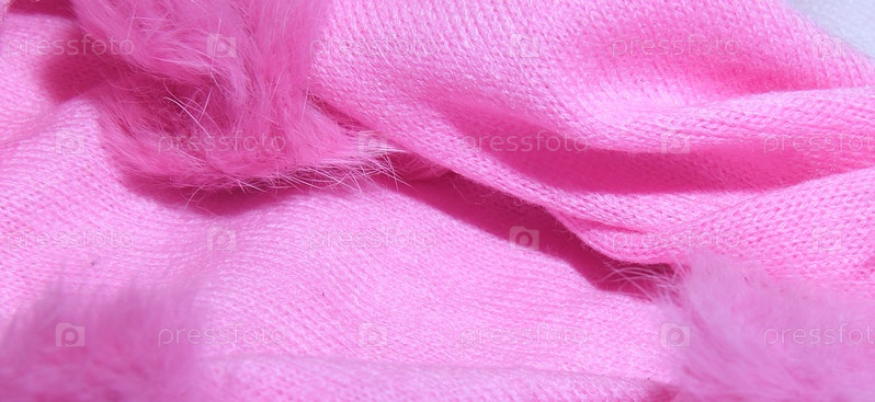 Текстура розового вязаного вязаного шарфа с окрашенным мехом кролика