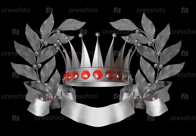 Серебряная корона с самоцветами в обрамлении лаврового венка и ленты