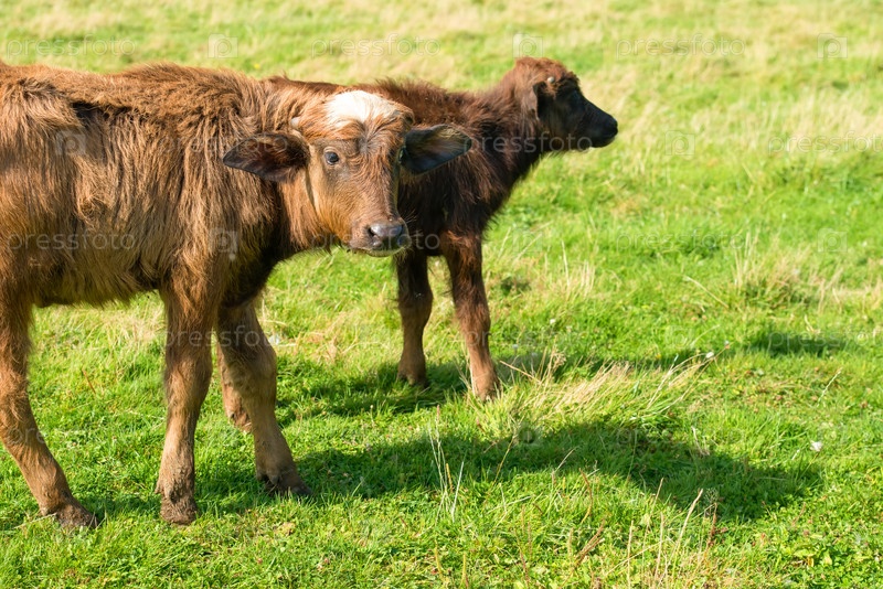 Теленок буйвола на поле в летний день