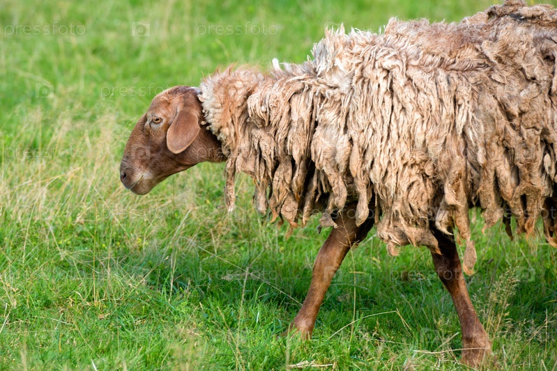 Овцы со спутанной шерстью пасутся на лугу