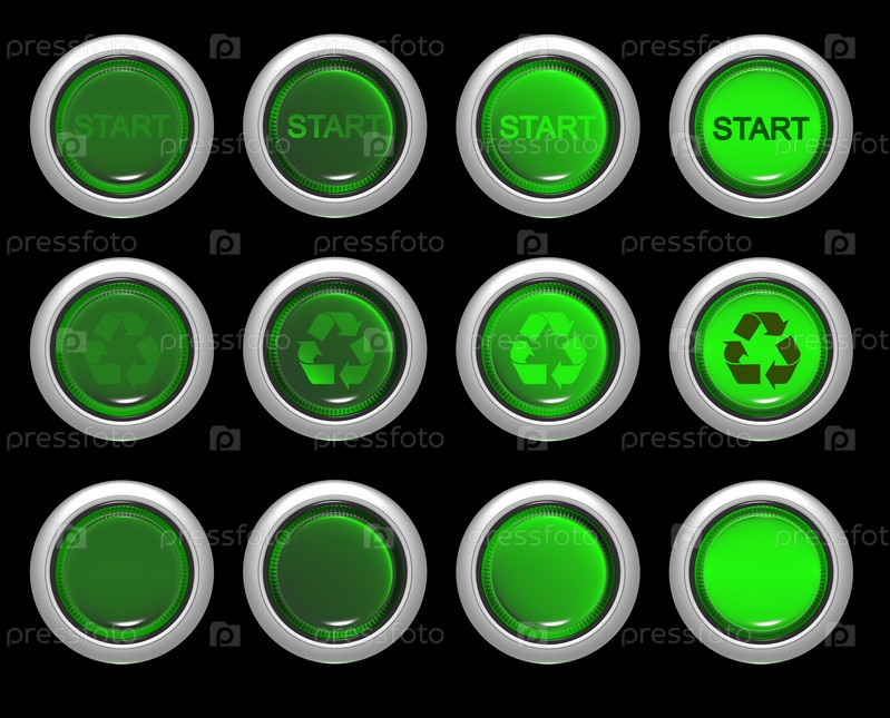 Зеленая кнопка с символом переработки и "Старт"