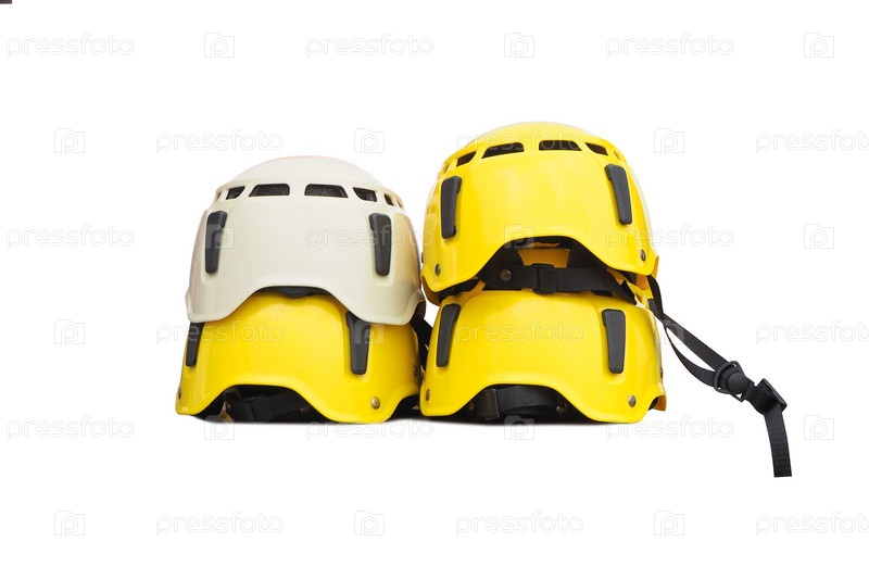 Набор желтых и белых изолированных касок