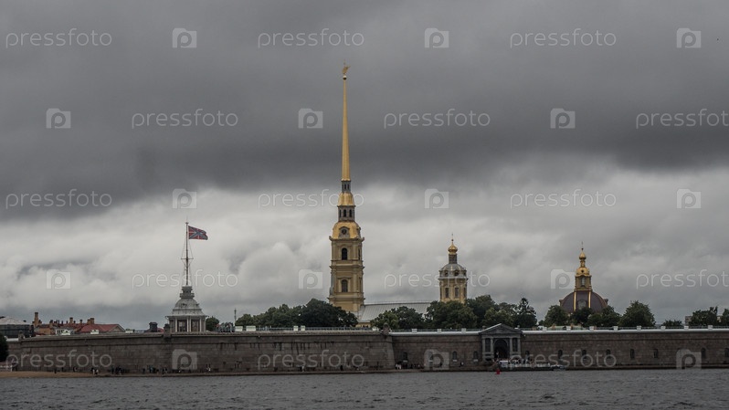 Речная панорама на реке Нева, вид с берега