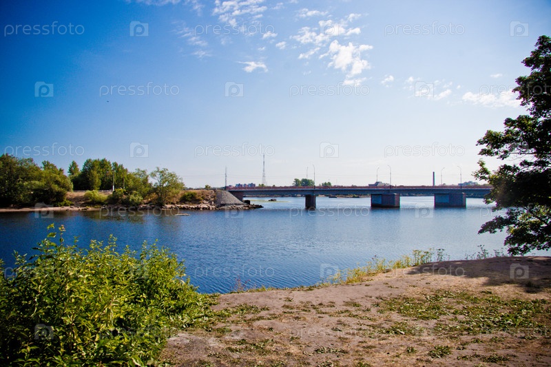 Речная панорама на реке Нева, вид с берега