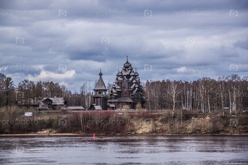 Речная панорама на реке Нева, вид с берега